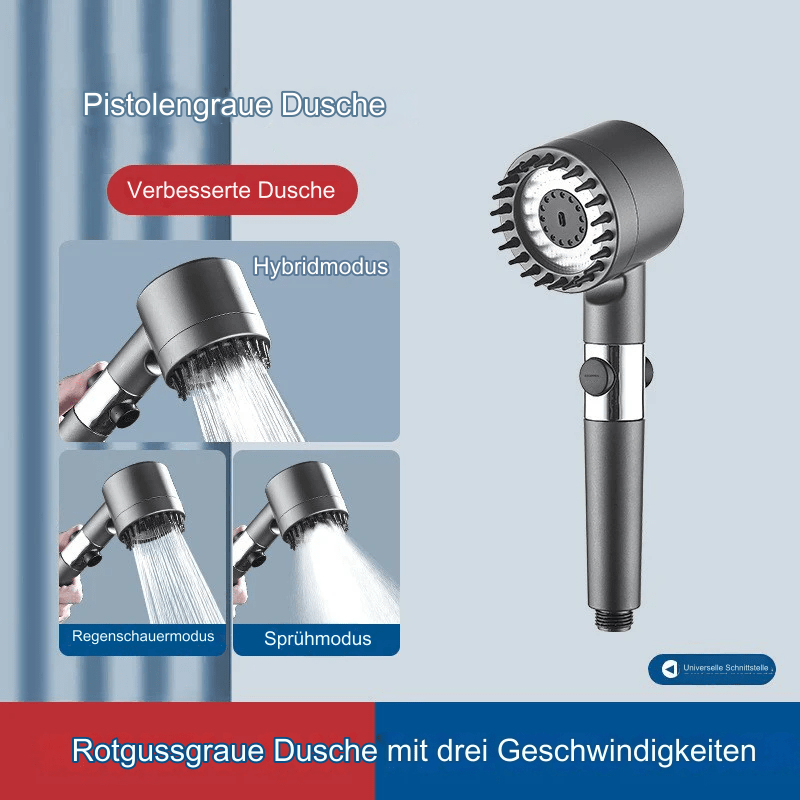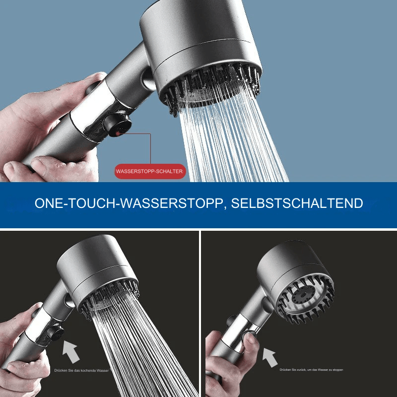 Drei einstellbare Sprühmodi: Wähle aus drei verschiedenen Sprühmodi, um deine Dusche individuell anzupassen. Der “Regen”-Modus verwöhnt dich mit einem sanften, breiten Wasserstrahl, während der “Massage”-Modus gezielt Verspannungen löst. Der “Kombinations”-Modus bietet das Beste aus beiden Welten für ein ganzheitliches Duscherlebnis.