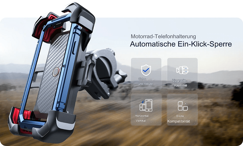 Passt auf jedes Handy und verfügt über eine automatische Einstellvorrichtung und eine Zusatzversicherung.