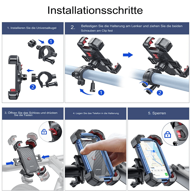 Vielseitige Anwendung: Neben dem Fahrradfahren ist der GearGrip auch ideal für Motorräder, E-Bikes, Roller und sogar Kinderwagen geeignet. Halten Sie Ihr Smartphone immer griffbereit, egal wo Sie unterwegs sind.
