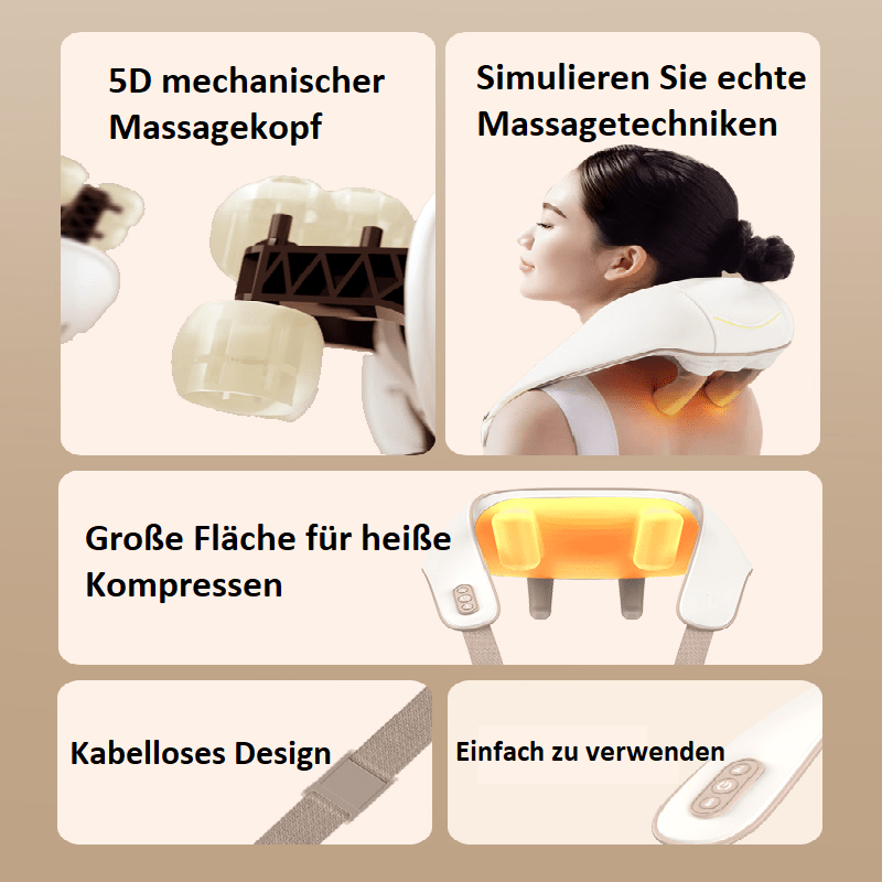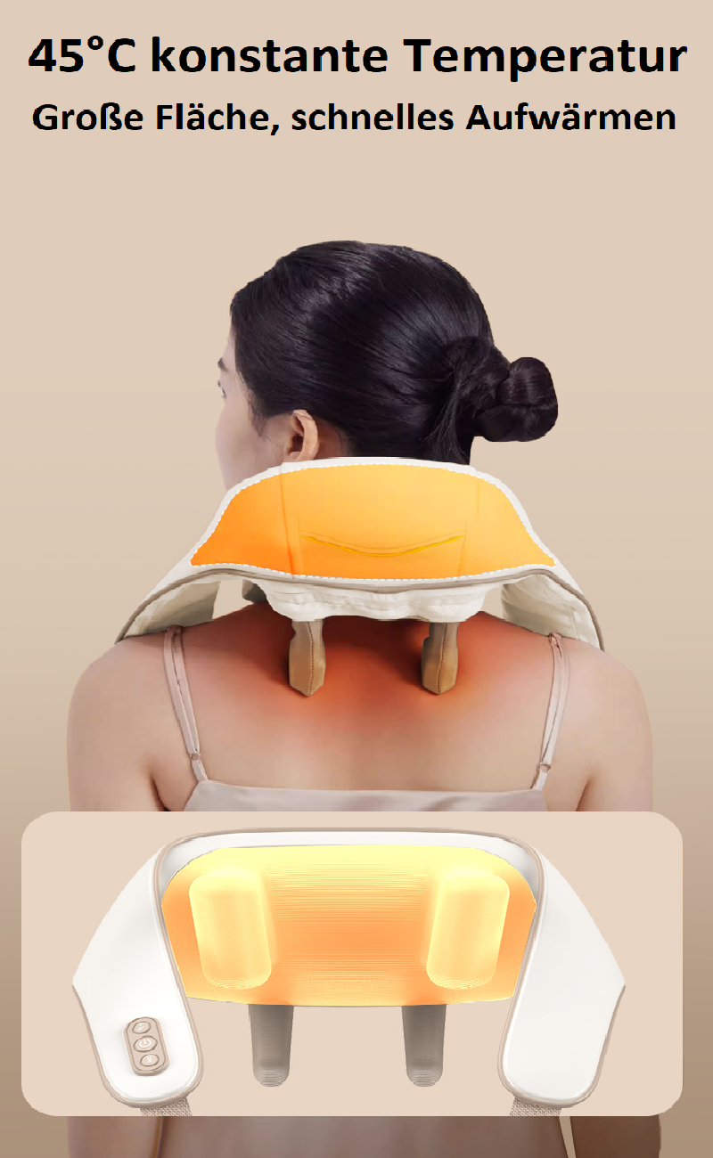 Wärmetherapie: Erleben Sie die Wärme unserer fortschrittlichen Heiztechnologie, die die Durchblutung fördert und Verspannungen lindert. Das beheizte elektrische Nackenmassagegerät sorgt für eine glückselige Flucht aus dem Alltagstrott und bietet Komfort, der auf Ihre Bedürfnisse zugeschnitten ist.