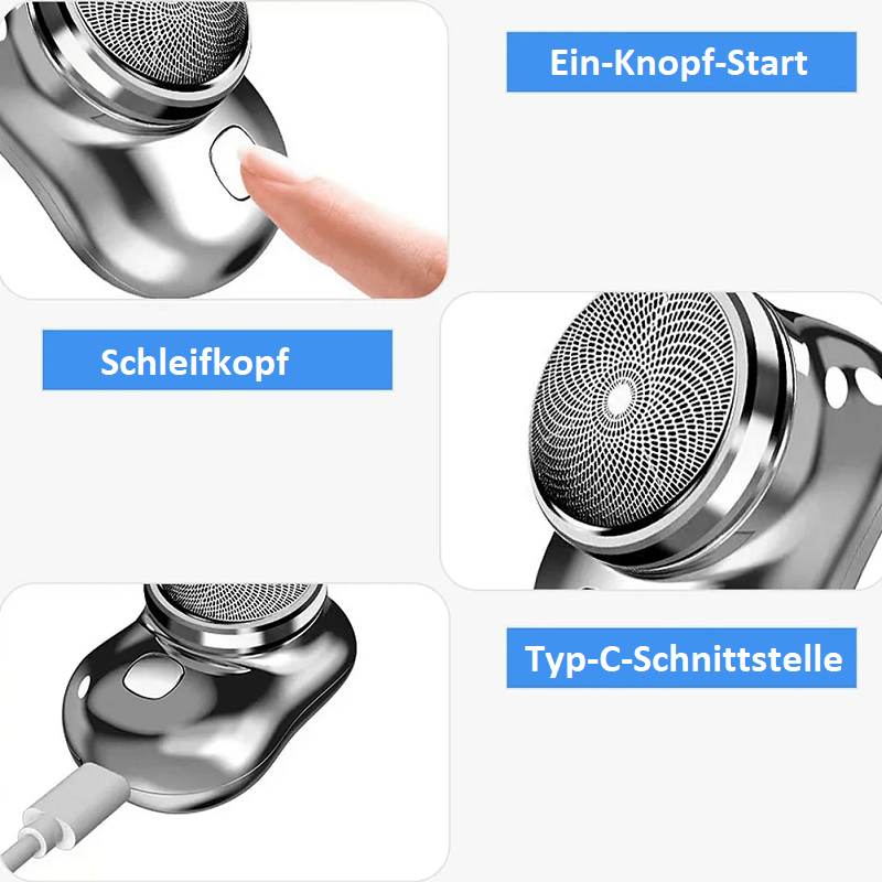 Vielseitig einsetzbar: Egal, ob Sie vor einem Geschäftstreffen eine schnelle Auffrischung oder vor einem Abend in Genf eine vollständige Rasur benötigen, unser tragbarer Elektrorasierer ist genau das Richtige für Sie. Durch sein vielseitiges Design eignet es sich für die Anwendung im Gesicht, am Hals und in anderen Bereichen und sorgt für ein umfassendes Pflegeerlebnis.